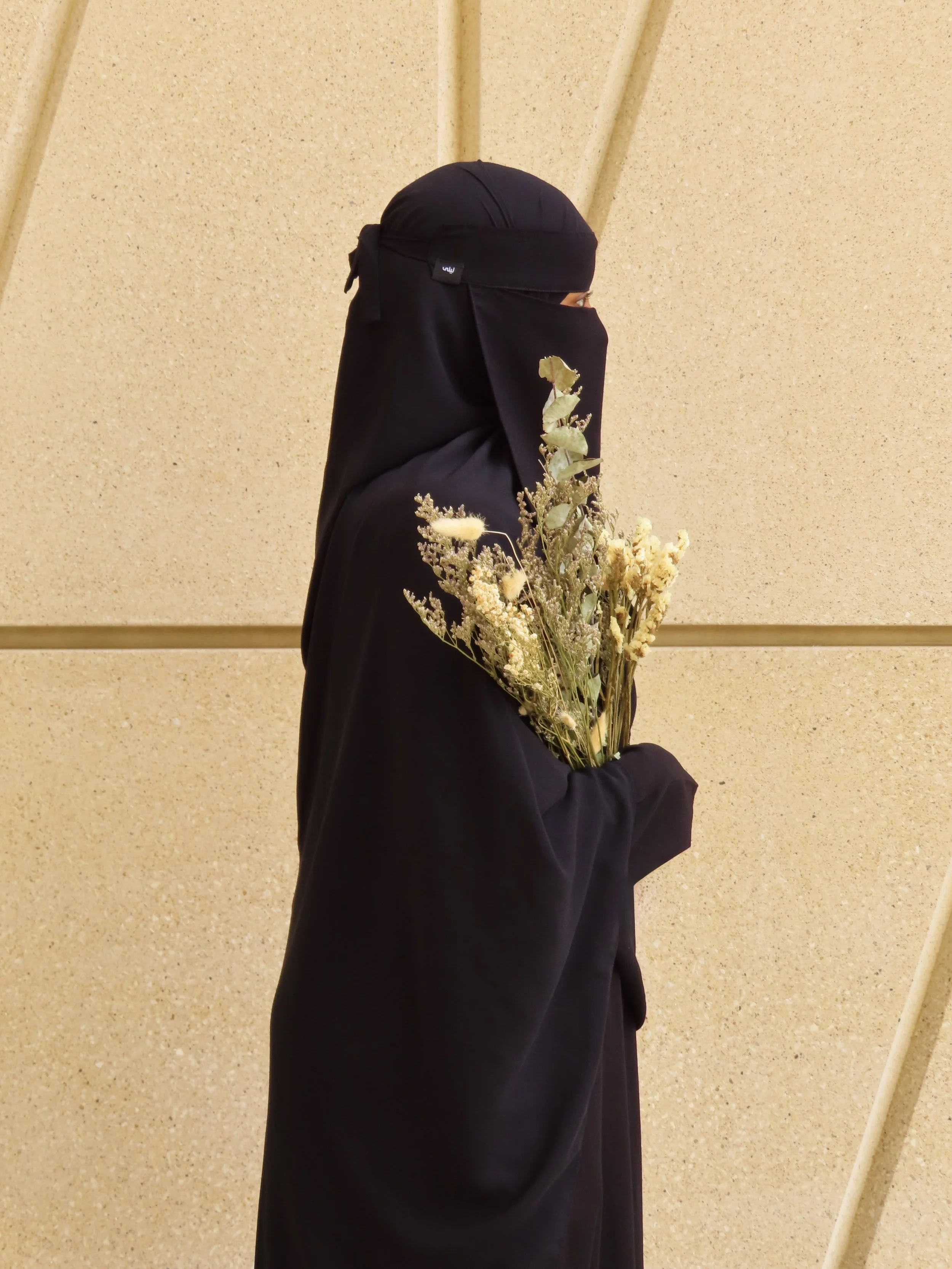 Now available with a matching adjustable niqab, offering modesty and coordination in one set. Choose between 7" or 9" coverage to suit your preference.